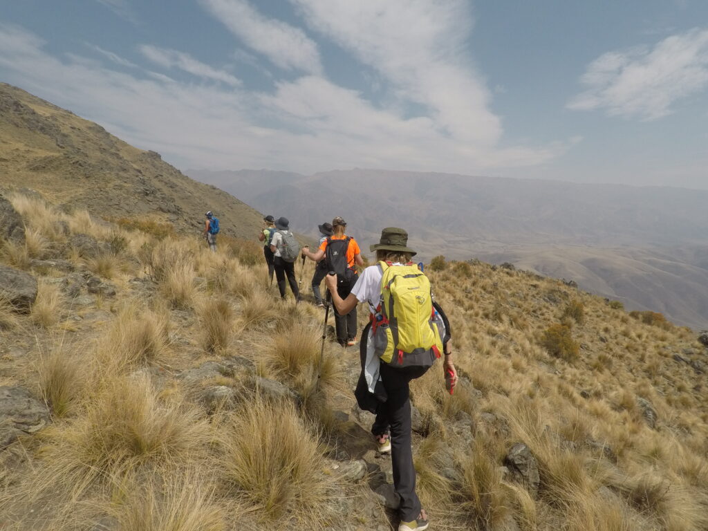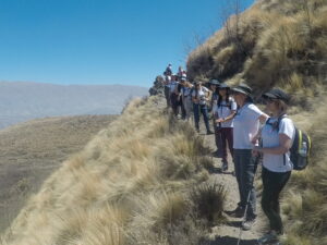 La ruta que elegida es “Cristo Rey” nos hará ascender atravesando un bosque montano hasta la primera mesada, donde la vegetación cambia por completo, siendo ya todo pastizal de altura. Luego de superar la mesada tendremos otro ascenso en serpenteo por una cuesta con acarreo hasta la zona conocida como la lagunita, tendremos una panorámica vista a todo el valle durante todo el ascenso. La última parte de nuestro ascenso se hará en terreno rocoso, típico de la altura (3000 metros) donde por momentos caminaremos por el filo de la montaña y en momentos por la ladera hasta llegar a los 3340 metros de altura máxima con vistas privilegiadas de Tafí y sus alrededores.